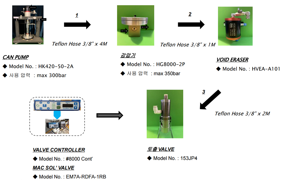 갭필러, 고정형 실리콘, 서멀그리스등 Filler가 다수 첨가된 제품에 대한 약 100만번 이상 의 토출테스트를 거쳐 시스템의 성능을 검수하고 있으며, 국내외 어떠한 환경에서도 어느 토출액에 대해서도 적용액의 손실을 최소화 할 수 있습니다.